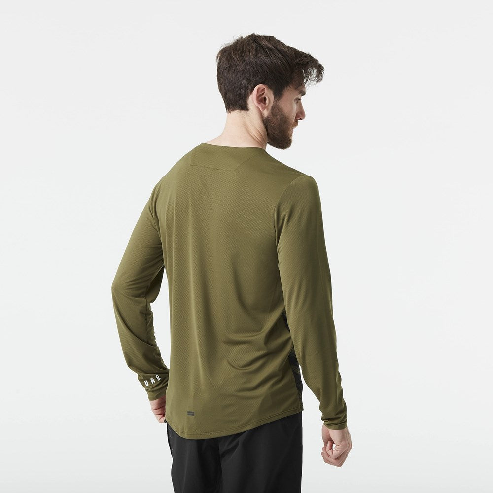 Our Osborn Tech Tee is a cleverly designed technical mountain bike long-sleeve t-shirt featuring an adjusted long-back fit, a chafe-free collar, and raglan sleeves. It also features a goggle cleaner. Featuring the Dark Eartly print from our new collection, designers drew their inspiration from the marbling of marble. Made with highly breathable fabric, UPF50+ UV protection, and an even lighter grid mesh fabric in the back. The Dry Now wicking technology and Dry Feel antimicrobial treatment keep you dry and cool while you ride.
