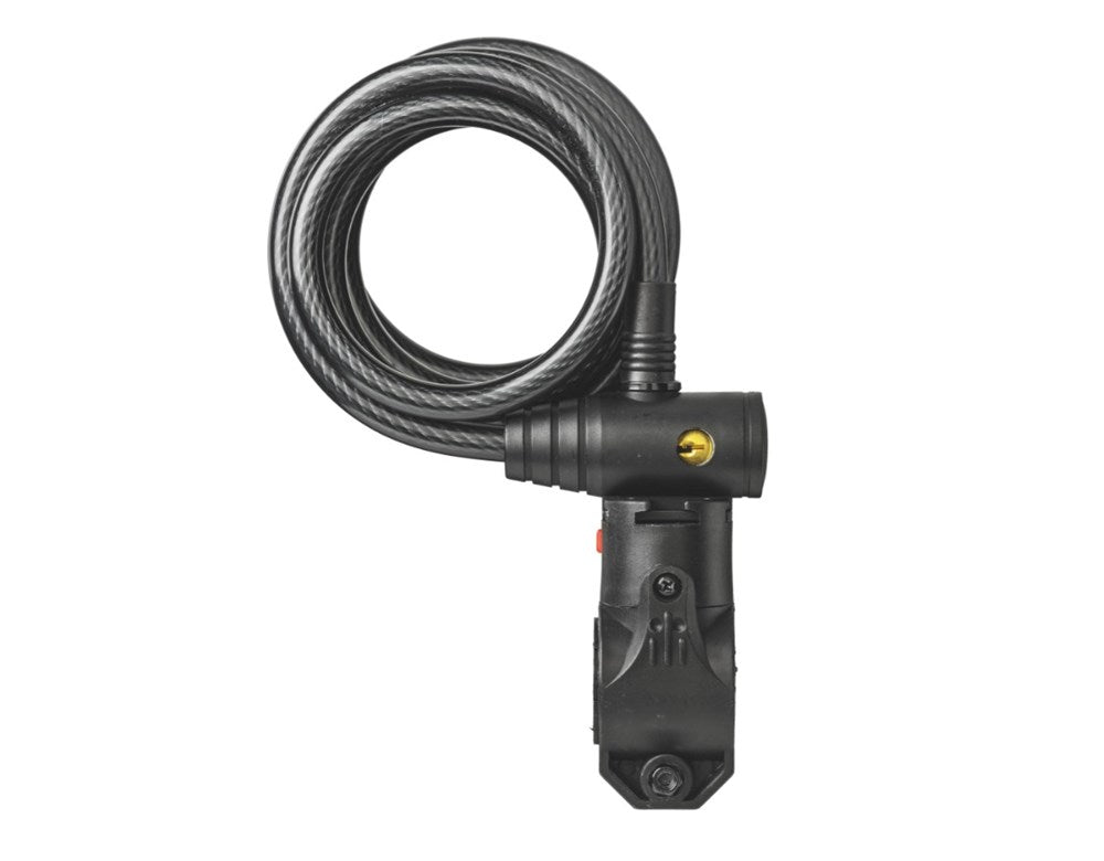 Comes with an integrated mount/bracket that allows storage of cable on bike when not in use.