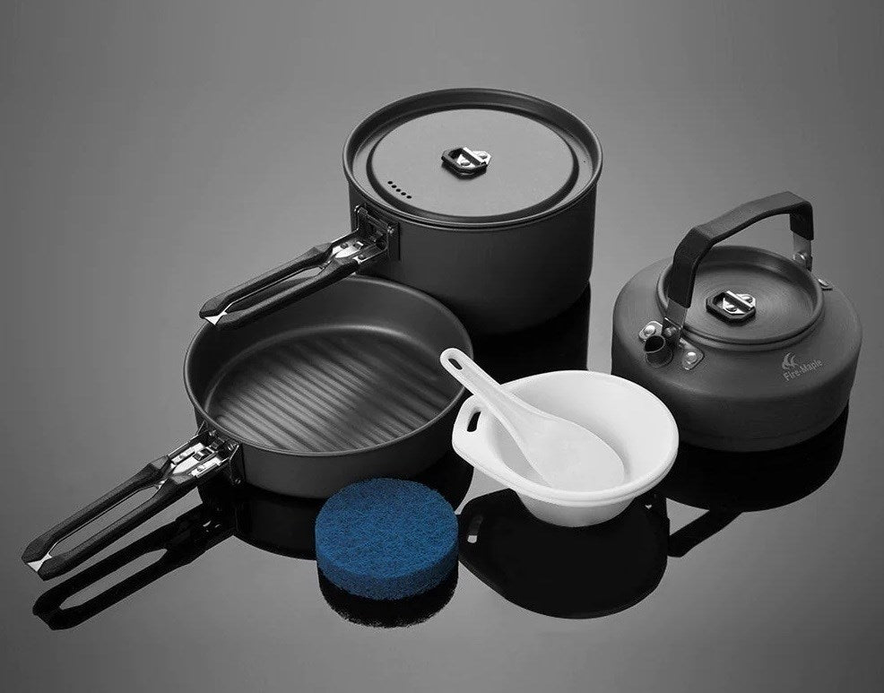 Fire Maple Feast 2 Aluminum Cook Set - Aluminum Grey w/ Black Handles