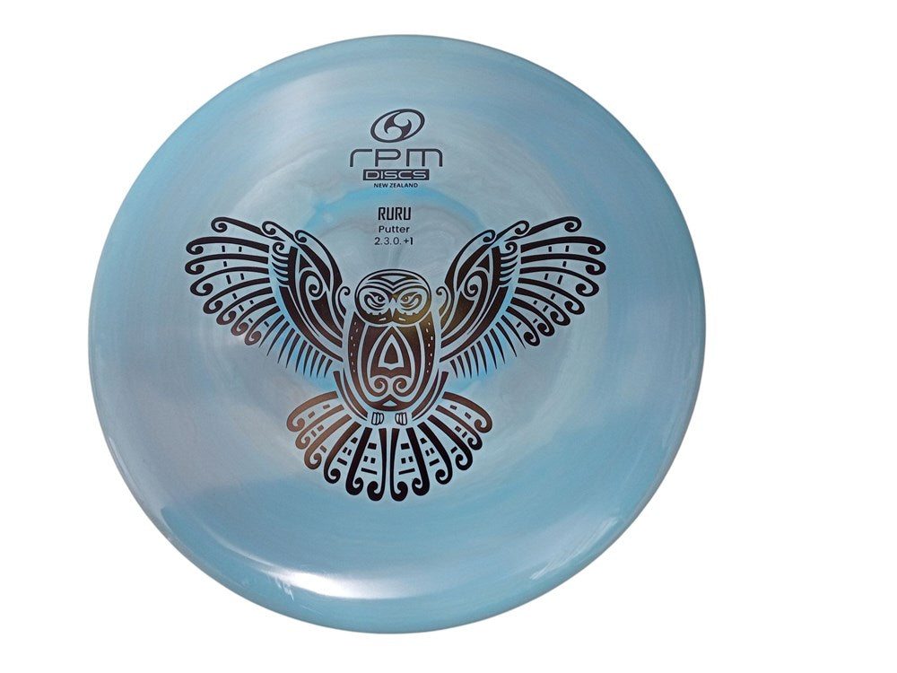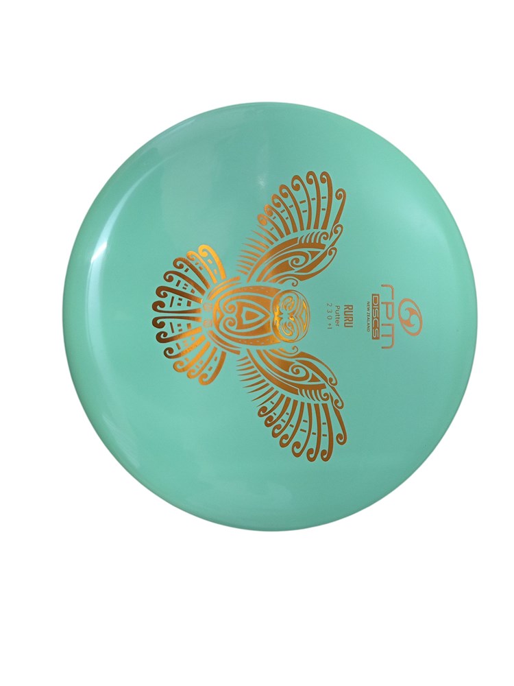 The Ruru or (Morepork) is RPM’s dedicated Putter and named after a NZ native owl. The flight is slow and consistent, stable with a very small late fade. The Ruru has a small bead and a deep Rim. It is PDGA approved to 174.3g