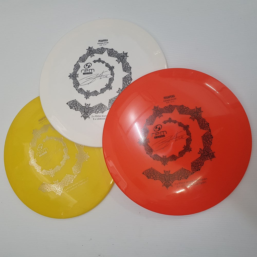 The RPM Pekapeka is an understable fairway driver that will allow players to work the disc from left to right as a (right hand backhanded player, visa versa for lefties), hyzer flip down narrow corridors and lay down rollers when required. The small convex shaped rim is comfortable to hold and will be ideal for beginners. Intermediate and advanced players will also find good uses for this disc and it will become a mainstay in most peoples bags.